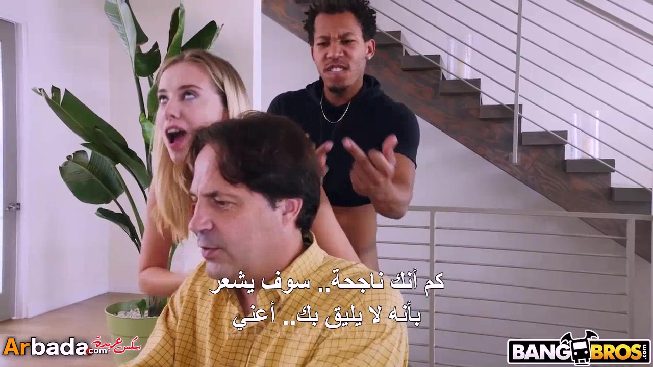 الاب يجد صديق ابنته الاسود علي الباب يخبره انه يريد التحدث مع ابنته بعض الشيء من اجل المذاكرة تاتي البنت من اجل المذاكرة ولكن تريد زبه بدل الكتاب
